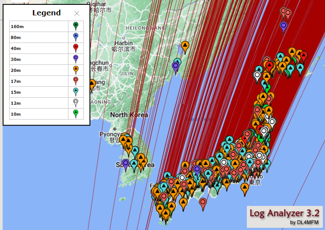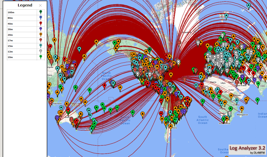 on the map show where I have been active from. The green ones, where I